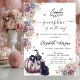 Una bonita invitación para una ducha de bebé tiene flores, calabaza con arco y gato negro. Estas invitaciones a la ducha de bebé se personalizan fácilmente para tu evento simplemente añadiendo tus detalles.