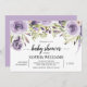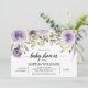 Invitación Baby Shower de flores moradas y verdes