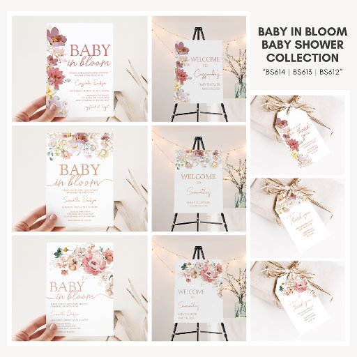 Bienvenido a tu pequeña con nuestro acogedor Baby in Bloom Baby Shower Invitation Impresible. ¡Personaliza para compartir la alegría con tus seres queridos! BS614