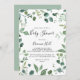 Invitación Baby Shower de follaje verde con guión de caligraf