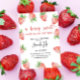 Carta de invitación a la ducha para bebés con chica lindo con ilustracion acuarela de fresas. El texto dice "un bebé dulce de berry está en camino". Elementos coincidentes disponibles.