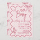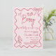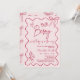 Invitación a Baby Shower de fresa roja roja roja roja dibujada a mano con una invitación a ducha de fresa con motivos de fresa con dibujos de fondo rosado y línea roja. Esta invitación a la ducha para bebés tiene fresas, marco ondulado y arco. Ideal para alguien que busca una invitación moderna a la ducha de bebé hecha a mano para una niña.