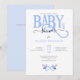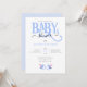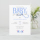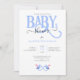 Adorable invitación de BABY SHOWER de GEMELOS NIÑOS AZULES con tipografía de BEBÉ AZUL y dos pequeños chupetes rosas