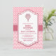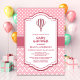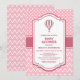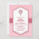 Invite a sus amigos y seres queridos con esta invitación a la ducha de bebé con globo aerostático rosa y blanco, decorada con puntos de polka y rayas de chevron.