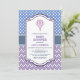 Invite a sus amigos y seres queridos con esta invitación a la ducha con globo de aire caliente azul y lavanda, decorada con puntos de polka y rayas de chevron.