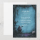Un diseño divertido y místico de una ducha de bebé, perfecto para los amantes de la elegancia gótica y los cuentos de hadas oscuros. Con un telón de fondo azul crepúsculo, viñas encantadas, murciélagos, un cráneo y un quequito decadente, esta invitación aporta una sofisticación espeluznante a la celebración de tu otoño.