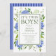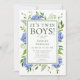 Esta invitación "It's Twin Boys!" es una invitación a la ducha de bebé hidrangea azul, elegante, tradicional, moderno y a la vez clásico. Es impresionante con sus hermosas hortensias azules multicolor y su brillante vegetación natural. Tiene una coordinadora rayada azul. Es perfecto para tu ducha de bebé o la de tu ser querido.