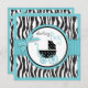 Tinta de cebra y punto de estilo boutique con acentos turquesa y un carro de bebés.