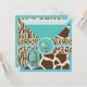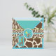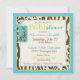 Dulce jirafa y un pacificador salvaje con estampados de cebra, jirafa, leopardo y chita con cintas guarnecido de encaje 3D invitan a la ducha bebé. Los colores son azul, verde y marrón.