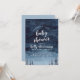 Una bonita tarjeta de invitación a la ducha para bebés con un cielo azul oscuro con estrellas y pinos cubiertos de nieve. Su nombre personalizado y detalles de ducha aparecen en una tipografía de escritura moderna. Estas cartas se revierten a un color azul pastel. La personalización no puede ser más sencilla, simplemente haga clic en "Personalizar esta plantilla" y cambie el texto en los cuadros de plantilla.