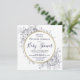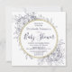 Este diseño presenta peonías y follaje en un estilo de dibujo moderno y minimalista que recuerda a la tela floral. Los círculos con delineado dorado acentúan el texto con serios clásicos y una tipografía cursiva manuscrita. "Baby Shower" se exhibe en el centro. La parte trasera de la invitación a la ducha de novia tiene los detalles del registro. También hay mucho espacio en la parte posterior para añadir detalles o texto adicional.