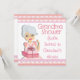 Una invitación a la ducha de la abuela para el nuevo bebé. Porque la abuela también necesita cosas geniales y está tan emocionada como los nuevos padres. :) Abuela linda con regalos rosas con bordes de melocotón rosa y oscuro. Cuadros Fiestas de papel coincidentes