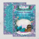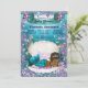 Invitación a la sirena americana de una ducha de bebé con adorable princesa de sirena étnica adorable bebé en una cáscara de arcilla de perla de bonito sobre un hermoso azul verde azulado y morado bajo el fondo del mar. Puede personalizar fácilmente esta hermosa invitación a la sirena de la ducha para su evento simplemente añadiendo sus detalles. Se trata de un diseño impreso sin purpurina, joyas, arcos, etc.