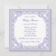 Invitación adorable de baby shower vintage de lavanda morada. Esta dulce invitación de baby shower vintage morada y gris de bebé en cunita se personaliza fácilmente para su evento añadiendo los detalles del evento, el estilo de letra, el tamaño y color de la letra, y la redacción.