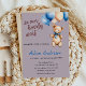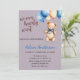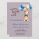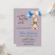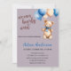 Esta encantadora invitación a la ducha para bebés cuenta con un oso de peluche color agua flotando con globos azules y melocotón sobre un fondo de lavanda muda. Con la dulce frase "Podemos esperar temprano", es una manera perfecta de celebrar la próxima llegada de un bebé. Elegante pero lúdico, este diseño es fácil de personalizar con los detalles de su fiesta.