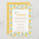 Es la invitación Baby Shower Twins Cute Yellow Lemon Foliage - Celebra la próxima llegada de tus preciosos gemelos con esta sencilla, adorable y adorable "Invitación Baby Shower" con fruta de limón amarillo rodeada de follaje de hojas. Todos los textos están predispuestos para que puedas personalizarlos fácil y rápidamente con los detalles de tu ducha de bebé.