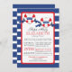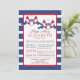 Moderna ducha náutica de color rojo, blanco y azul para los bebés gemelos con ducha. Nuestra invitación a la ducha de bebé gemelos contemporáneos Ships Ahoy incluye dos corazones de rayas rojas y blancas Buoy con carteles azules con la palabra gemelos en ellos. El fondo es una franja horizontal azul y blanca, audaz y brillante. Girar la invitación para que vuelva la banda correspondiente. Visite nuestra tienda para ver esto para una ducha de bebé para niños, una ducha de bebé para chicas y una ducha de bebé neutra de género.