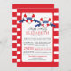 Moderna ducha náutica de color rojo, blanco y azul para los bebés gemelos con ducha. Nuestra invitación a la ducha de bebé gemelos contemporáneos Ships Ahoy incluye dos corazones de rayas rojas y blancas Buoy con carteles azules con la palabra gemelos en ellos. El fondo es una franja horizontal brillante y brillante en rojo y blanco. Girar la invitación para que vuelva la banda correspondiente. Visite nuestra tienda para ver esto para una ducha de bebé para niños, una ducha de bebé para chicas y una ducha de bebé neutra de género.