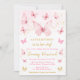 Esta encantadora y caprichosa invitación a bañarse en una ducha de color agua tiene mariposas rosadas y doradas y confeti dorado. El texto combina guiones manuscritos y sans serif para un estilo elegante y moderno. Es perfecto para una ducha de bebé. Gráficos de www.etsy.com/uk/shop/SunflowerDayLove