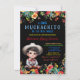 Celebra la llegada de tu pequeño muchachito con esta encantadora invitación de Muchachito Charro Fiesta para baby shower. Con un diseño vibrante y festivo, esta invitación muestra flores coloridas en la parte superior e inferior del frente, con acentos florales coincidentes en la parte posterior. El punto culminante del diseño es un adorable bebé vestido con un traje y sombrero charro auténticos, lo que añade un toque encantador de tradición a tu celebración con tema de fiesta.