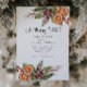 Navidades rústicos temática tarjeta de invitación a la ducha de bebé con ilustracion acuarela de botánicos de invierno incluyendo, mistletoe, rama de pino, bayas, naranja, etc. El texto dice "una pequeña y alegre ducha de bebé".