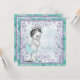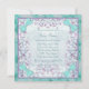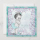 Adorable invitación vintage de baby shower de princesa en lavanda y azul turquesa. Esta linda invitación de baby shower en lavanda y azul turquesa se personaliza fácilmente para su evento agregando los detalles del evento, estilo de letra, tamaño y color de la letra, y redacción.