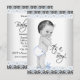 Invitación de baby shower azul y gris con un adorable bebé en un bonito fondo negro, azul y gris. Esta linda invitación de baby shower en negro, azul y gris se personaliza fácilmente para su evento simplemente agregando los detalles del evento, estilo de letra, tamaño y color de la letra, y redacción.