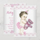 Invitación de baby shower de niña rosa adorable. Esta linda invitación de baby shower de osito de peluche rosa se personaliza fácilmente para su evento agregando los detalles del evento, estilo de fuente, tamaño y color de fuente, y redacción - también puede elegir el color de fondo que desee.