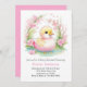 Invitación Baby Shower de Patito Caprichoso con Flores Rosada