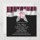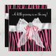 Rodo rosa de cebra blanco y negro arco de rombo de princesa princesa de ducha de bebé... Añada sus detalles al frente y atrás agregando los detalles del evento, estilo de letra, tamaño de letra y color, y texto. Tenga en cuenta que todos los diseños de invitación que encontrará en Zazzle son gráficos impresos en papel plano sin joyas, arcos, arcos, piezas grabado en relieve o añadidas.