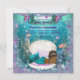 Invitación de baby shower de sirena con adorable princesa sirena afroamericana con tiara de diamantes en una hermosa concha de perla sobre un hermoso fondo submarino azul teal y púrpura. Puedes personalizar fácilmente esta hermosa invitación de baby shower de sirena para tu evento simplemente agregando tus datos. Este es un diseño impreso sin purpurina real, joyas, lazos, etc.