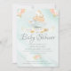 La hermosa invitación a la ducha de color agua para bebés tiene un bebé de hadas en la parte trasera de un pájaro mojado.