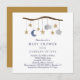 Esta adorable invitación para una ducha de bebé tiene un móvil rústico con un tema de cielo nocturno, que incluye luna, estrellas y nubes. Conjuga imágenes de canciones clásicas de canciones de cuna. Se puede personalizar todo el texto.