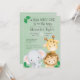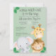 Elefante, león y jirafa Baby Shower Invitación personalizada de Ricaso con detalles de fondo de patrón blanco y verde... un diseño animal deslumbrante para que la madre sea - fácil de personalizar. Un poco salvaje está en camino.