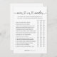 Haz que los clientes de una ducha de bebé participen en un juego de 'Over or Under' con esta minimalista y elegante carta de juegos, con un guión moderno con un corazón florido.