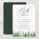 Árboles de acuarela rústicos, invitación a la ducha bebé. Elegante plantilla de diseño de tipografía con respaldo de color verde de bosque oscuro.
