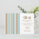Estripas azules y elefantes de taupe en esta súper linda invitación a la ducha de bebé.