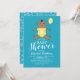 Invitaciones de baby shower de pequeño caballero con un fondo azul brillante que se puede cambiar a cualquier color, un adorable bebé de dibujos animados con un globo, y una plantilla moderna para fiesta de baby shower.