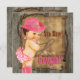 Invitación a la ducha de bebé de niña con adorable niñita de vaquero usando adorable gorra de vaquero, pantalones de peluche y botas de vaquero. Esta dulce y rústica invitación a la ducha de bebé se personaliza fácilmente para tu evento simplemente añadiendo los detalles del evento en el estilo de letra, color y texto de tu elección.