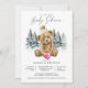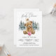 Bienvenidos a esta encantadora invitación a bañarse durante las vacaciones de invierno con un oso de peluche acuarela en un gorra de punto, adornado con un color rosa, contra un pinar nevado. El estilo suave y minimalista le da un toque acogedor de temporada mientras se concentra en su celebración. Ideal para las duchas de bebé que se organizan durante el invierno o la temporada de Navidades, este diseño combina la calidez festiva con detalles dulces y atemporales. Personalice la redacción para que se ajuste a su reunión y la haga única suya.