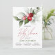 Bienvenido a este bebé de vacaciones con estilo con esta invitación a la ducha de bebé de nuestra colección de vacaciones modernas. Una gran hilera de vegetación adornada con bayas rojas es un punto de referencia para el diseño minimalista. Edite con los detalles de su fiesta cambiando la redacción, el estilo de fuente o los colores de fuente. Disponible en varios tamaños, formas y tipos de papel.