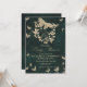 Una caprichosa corona de vegetación exuberante y en cascada, y una salpicadura de mariposas que brillan con luces de hadas y mágico polvo, adornadas con un efecto dorado (¡esto es un efecto digital, no un verdadero Relieve metalizado o purpurina!) decoran esta invitación a la ducha de bebé de verano con un tema de bosque encantado y un tema de mariposa, así como un fondo verde esmeralda. Una invitación elegante y moderna para una ducha de cuento de hadas. Perfecto para madres y padres que adoren el entorno de los cuentos de hadas, el bosque de hadas o el tema del hadas, el tema de las mariposas y el verde esmeralda.