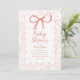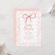 Este bonito diseño de una ducha de bebé tiene un sutil fondo floral, un marco de vieiras y un arco dulce.