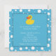 Burbujas azules y blancas adorables con invitaciones a la ducha de bebé de pato de goma amarillo. Esta tierna invitación a la ducha de bebé de un pato amarillo de goma se personaliza fácilmente para tu evento simplemente añadiendo los detalles del evento, el estilo de fuente, el tamaño y color del tipo de letra y la redacción.