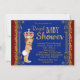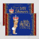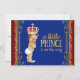 Invitación de baby shower de príncipe con fondo rojo azul real y dorado y adorable principito con corona real sobre un hermoso fondo azul y dorado. Esta invitación ornamentada de baby shower real de príncipe rojo azul y dorado se personaliza fácilmente para su evento agregando los detalles del evento, estilo de fuente, tamaño y color de fuente, y redacción.