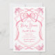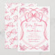 Invitación Baby Shower delicado de Acuarela con lazo rosa