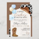 ¡Invitación personal de Baby Shower para niñito de vaca! Perfecto para celebrar la llegada de su pequeño vaquero, esta invitación incluye adorables gráficos de temática occidental en un moderno formato digital. Ideal para eventos virtuales y en persona, esta invitación al personalizable combina el encanto de un tema de vaqueros con la comodidad de la entrega digital. Personalízalo con tus detalles para crear una ducha de bebé única y memorable que tus huéspedes apreciarán. 🤠 🍼