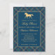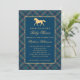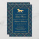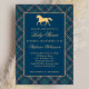Invitación Baby Shower Ecuestre Clásica Preppy Plaid Blue - Una invitación a la ducha infantil preppy, clásica con elementos ecuestres y de felpa en la marina, verde cazador con tono dorado y acentos rojo burdeos. La parte superior está decorada con una silueta de caballo en marcha y el patrón tartán aporta un toque atemporal. Perfecto para una ducha de bebé con la temática de Old Money, con un ambiente clásico, vintage y lujoso. Si te gusta el núcleo del abuelo, el estilo vintage es una gran invitación a la ducha de bebé. Disponible en versión impresa y como descarga digital. Personalizar esta plantilla de invitación a la ducha para bebés editable con sus propios detalles de evento.