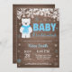 Invitación Rustic Polar Bear Winter Boy Baby Shower. Copo de nieve blanco. Beba su frío fuera de la invitación de Baby Shower. Muchacho Invitación Baby Shower. Invitación Baby Shower para vacaciones de invierno. Fondo De Madera Rústica. Barniz Retro Vintage del País.