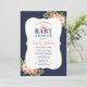 Invitación Baby Shower Elegante de Niña con Flores en Azul Ma